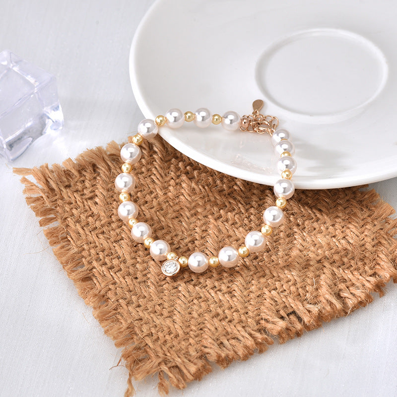 SBL001 純銀925 莫桑石 (0.3 CT) Pearl Station 手鏈